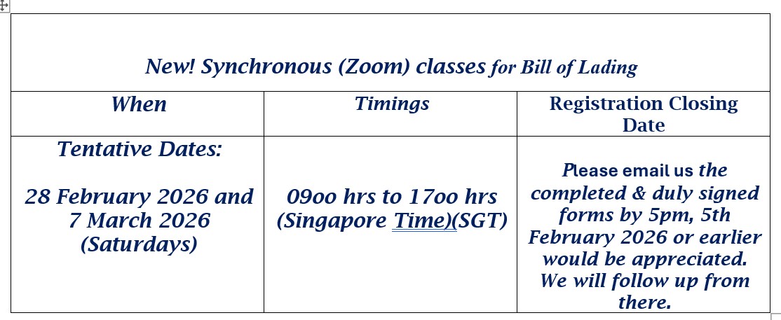 This unique and specialised short course emphasize not only on its professional contents of the subject matter but its practical approach in handling claim cases involving bill of lading. Participants will not only gain insights on the subject matter but will also be able to gain an appreciation of this specialised area of study and work scope upon course completion.